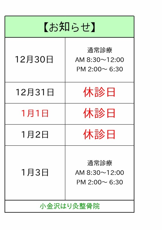 年末年始の受付時間